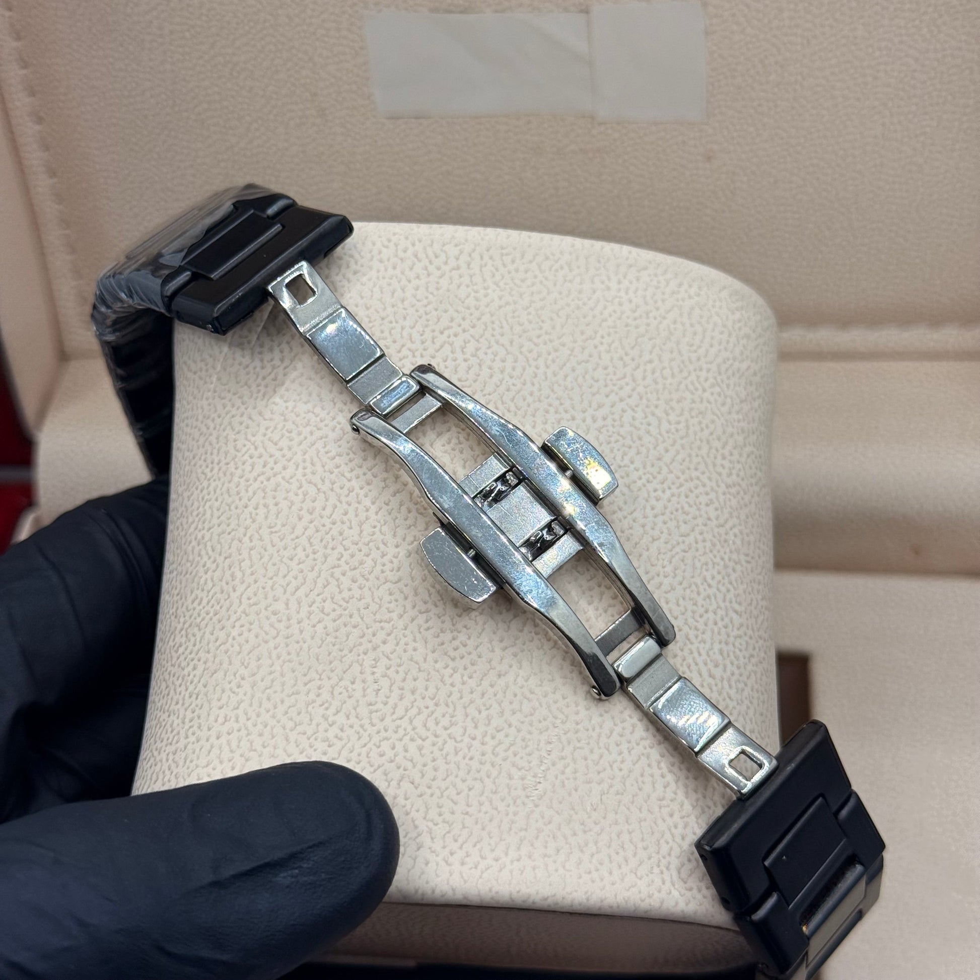 Black Aura stain less steel black with marble dial